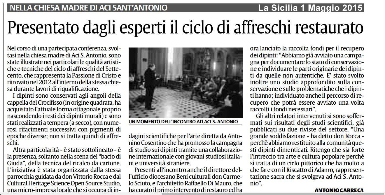 The Conference “Discovered wall paintings in the Crucifix Chapel” was held in Aci Sant’Antonio April 26th.