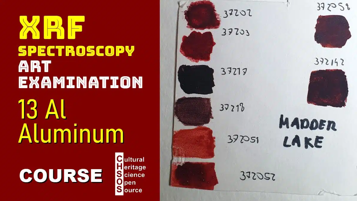 This lesson focuses on the identification of aluminum, exploring the case of madder lake. Aluminum, with an atomic number of 13, can be detected by its K-alpha line at 1.5 keV. Understanding how aluminum is used in madder lake formulations helps in analyzing historical and modern recepes for this and other lakes. The lesson explores different types of madder lake and their elemental compositions to determine the role of aluminum and other elements used as mordants.