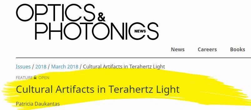 Patricia Daukantas, Cultural Artifacts in Terahertz Light, Optics and Photonics News, March 2018