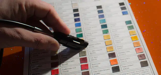 This FORS system was tested on the pigments checker laid with egg tempera, a collection of 54 historical pigments. The results are compared with the online FORS database of historical pigments published on e-conservation Journal.