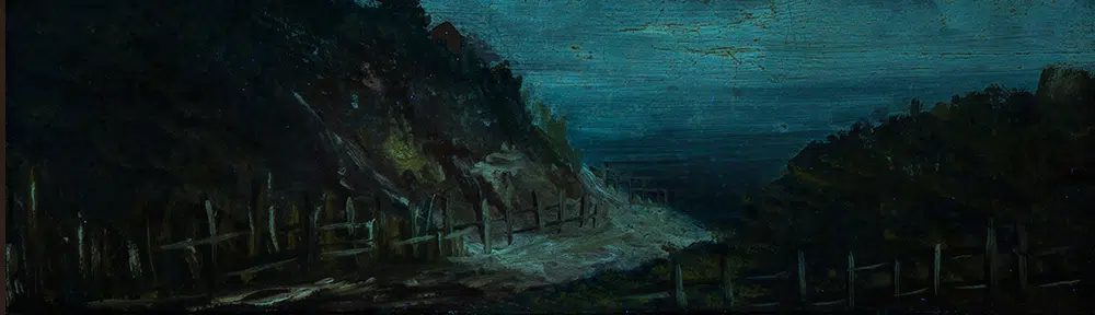 Here we have a small landscape painting (30 x 20 cm), titled on the back ”Al calar del sole.” belonging to a client of mine in Sicily he bought at an antiques fair. I definitely like the color rendition of the sky.