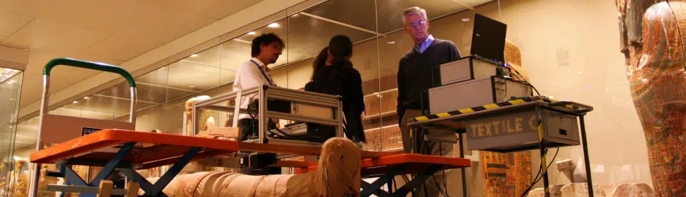 Among the various applications of Terahertz which we explored during my fellowship at the Metropolitan Museum there was also the examination on an Egyptian mummy. This study lead to this publication: E. Cortes, A. Cosentino, I. N. Duling, K. Fukunaga, D. T. Mininberg, I. Stuenkel, M. Leona “Investigating the use of terahertz pulsed time domain reflection imaging for the study of fabric layers of an Egyptian mummy,” Journal of the European Optical Society, Rapid publications 6, 11040 (2011).It was nice to work with this method since you can do a lot of 2D and 3D imaging. It has application for sure due to its specific advantages over X-ray, but it is still too expensive so it will take time before it can be adopted by conservation industry. Though, future developments will probably make it affordable. Well, hope you enjoy the video!