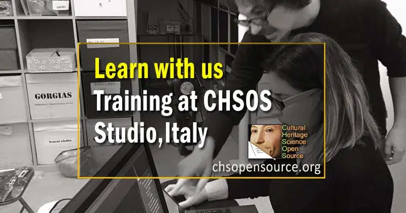 We just delivered the December 2017 Training program focused on Paintings at CHSOS Studio in Italy (click to see the list of former students). We had two guests, Serena Urry, Chief Conservator at the Cincinnati Art Museum and Julia Betancourt, director of the Conservation Studio Arty in Madrid. During our Training programs, students practice the equipment and become able to produce and interpret all the set of output data. The first-day we use our Technical Photography kit to become able to realize this set of Technical Photography images. On the second day, we explore Infrared Reflectography, RTI and Reflectance spectroscopy using Gorgias, our Reflectance Spectrometer for Art examination. Eventually, the Third day is about Multispectral Imaging, using Antonello, the MSI system and for a final review and consolidation of all the methods.