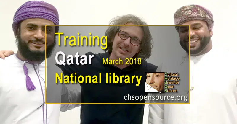 The Qatar National Library (QNL) invited all paper and book conservators from libraries, cultural institutions and museums in Qatar and the Arab world for this 3-day hands-on training with us, the Cultural Heritage Science Open Source. We got awesome participants from Lebanon, Marocco, Kuwait, Turkey, Oman, and Qatar. They were qualified as heads of different Library Departments: mostly Conservation and Digitization. As always, it was so inspirational to learn about their specific projects and plans to use our technical equipment.