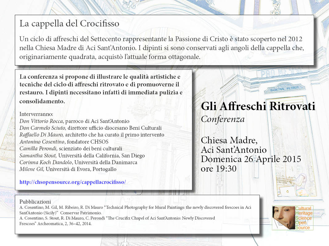 Aprile 2015 – Gli Affreschi Ritrovati. Conferenza. Chiesa Madre, Aci Sant’Antonio. Domenica 26 Aprile 2015 ore 19:30.